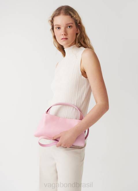olinda é a bolsa tiracolo contemporânea com silhueta godê. o estilo é feito em couro rosa claro com fecho magnético na parte superior, alça de ombro ajustável e alça superior para facilitar o uso. os detalhes incluem um bolso interno com zíper.
