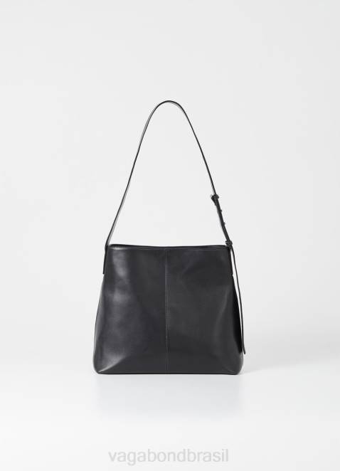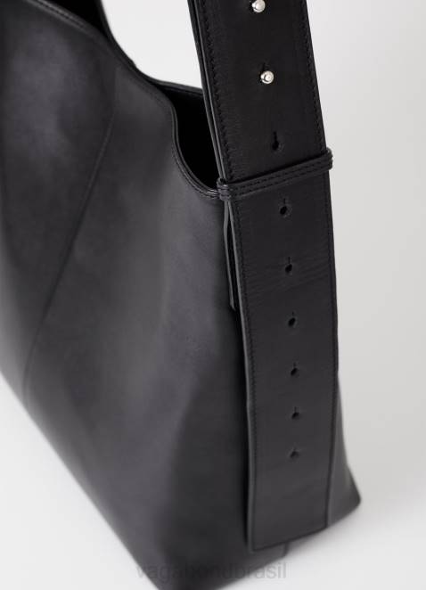 biella é a bolsa de ombro mínima com um design atemporal. o modelo é confeccionado em couro preto com fecho magnético, alça de ombro ajustável e bolso interno. os detalhes incluem forro têxtil e costuras detalhadas na parte superior.