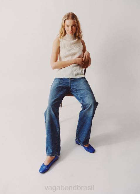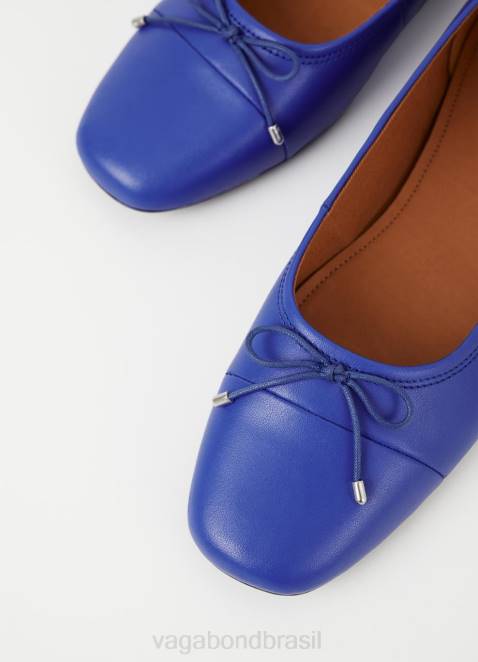 jolin é a sapatilha contemporânea em um tom ousado. o modelo é confeccionado em couro azul cobalto com bico arredondado e laço decorativo com detalhes em metal. os saltos baixos medem 11 mm.