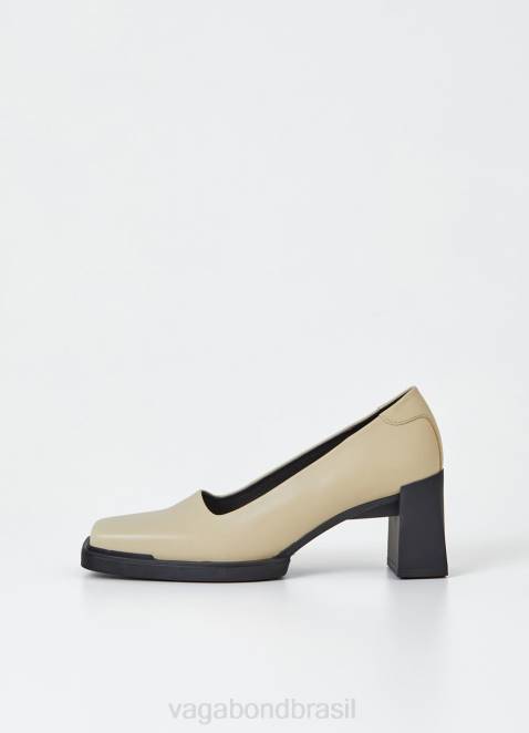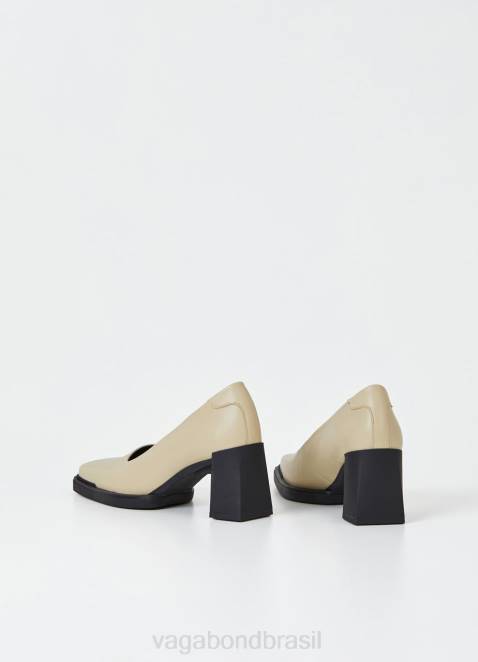 edwina é o scarpin feito de couro off-white liso, com bico quadrado e cabedal inspirado no estilo retrô. o estilo escultural assenta em salto bloco de 74 mm de cor contrastante.