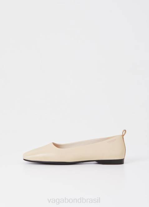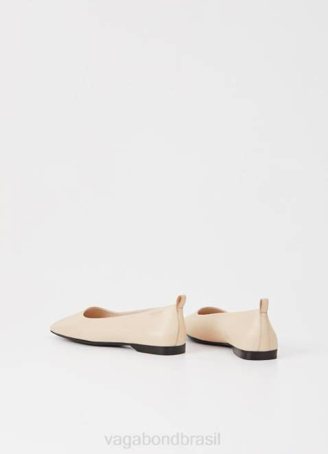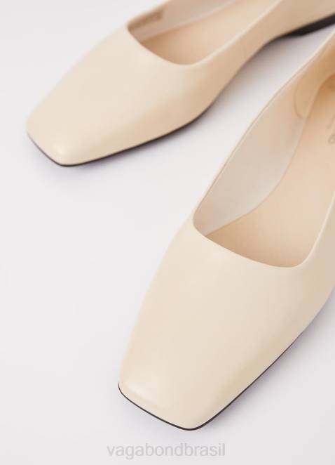 a Timeless Flats Delia tem um design sofisticado e minimalista. a parte superior limpa é trabalhada em couro esbranquiçado, projetada com dedos quadrados e presilhas no calcanhar. o estilo assenta em solas finas com saltos de 12mm.