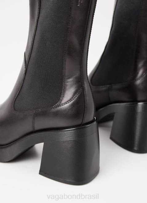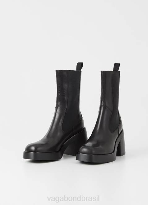 brooke é a versão plataforma das botas chelsea clássicas. o estilo é feito em couro preto com bico quadrado, painéis laterais elásticos e presilhas para puxar. o solado de plataforma sólida combina com saltos grossos de 87 mm.
