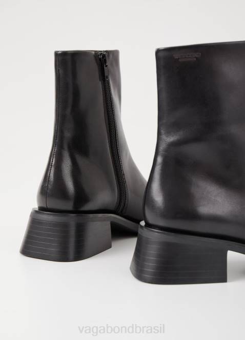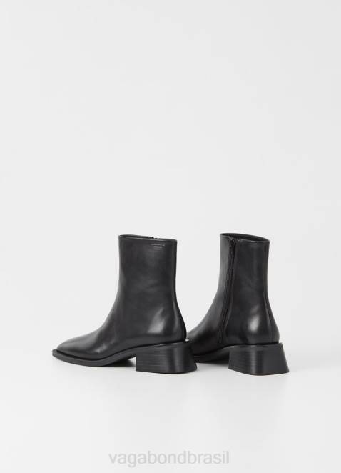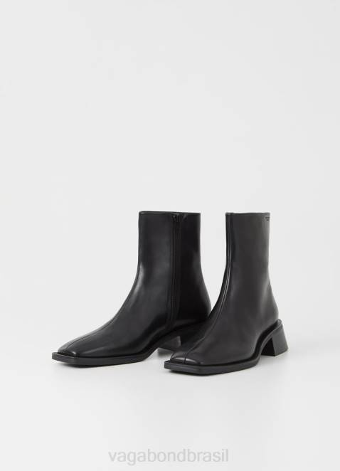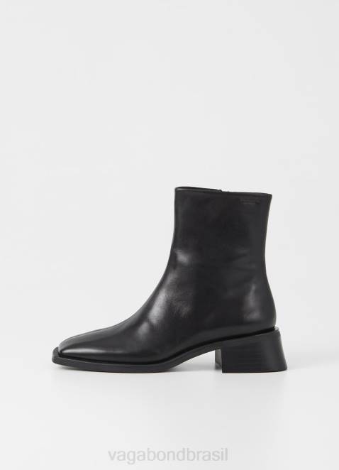blanca são os botins contemporâneos com um design minimalista. o estilo é feito em couro preto com bico quadrado, zíperes internos e costuras detalhadas na parte superior. o solado fino assenta em saltos largos de 47mm.
