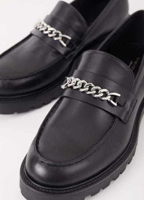 kenova é o mocassim vistoso com uma silhueta volumosa. o estilo é feito em couro preto com detalhe de corrente dourada e dedos arredondados. as grossas solas de borracha medem 40 mm. nota: use uma calça de sapato para proteger o calcanhar e prolongar ainda mais a vida útil do sapato.