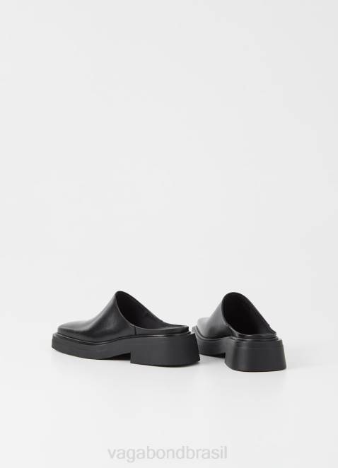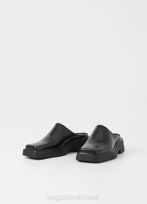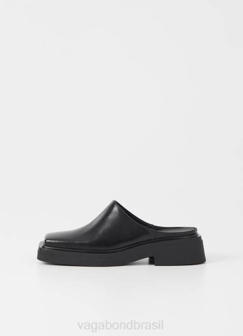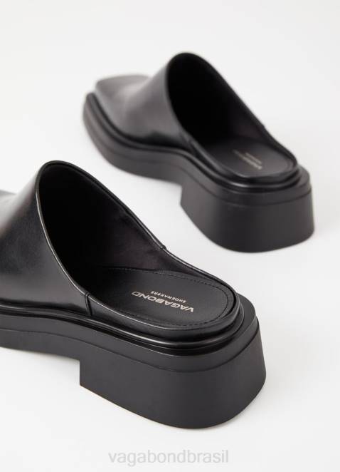 Mules contemporâneos eyra tem um design minimalista mas elevado. a parte superior é trabalhada em couro preto, com bico quadrado afiado e um design slip-in. o estilo se define em solas de borracha sólida medindo 45 mm.