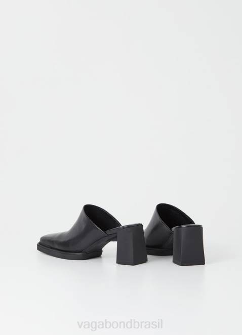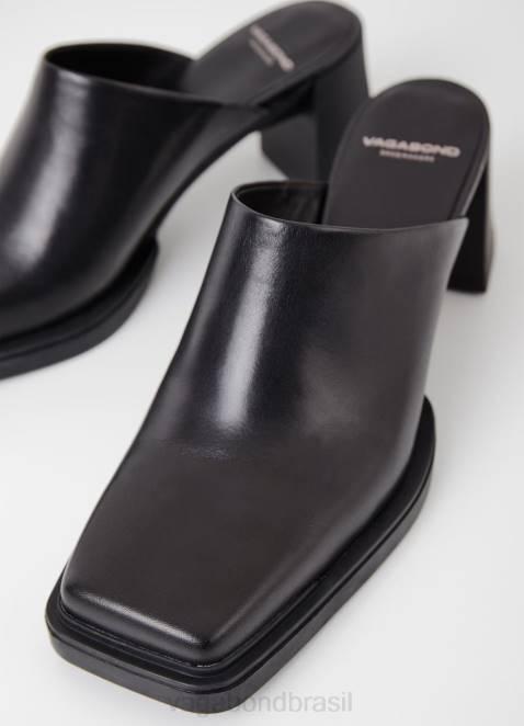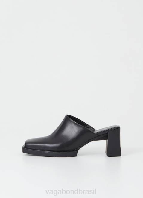 statement mules edwina é feito de couro preto liso, com bico quadrado afiado e design slip-in. o estilo escultural assenta em saltos de bloco distintos de 74 mm para um levantamento sutil.